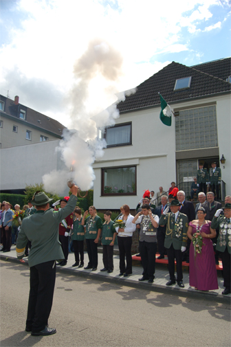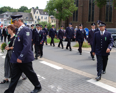 Am Sonntagmorgen zogen die Schützen geschlossen vom Platz an der