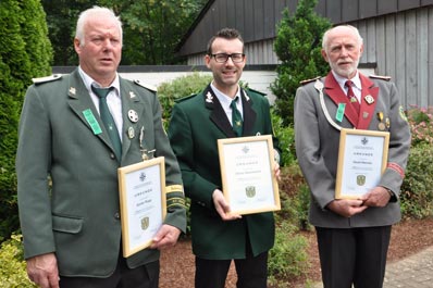 Für 25 Jahre Mitgliedschaft zeichnete Ditmar Krumpen Günter Rupp und Oliver Geschwind aus. 15 Jahre länger dem Verein die Stange gehalten hatte dagegen schon Oswald Weimbs. Dieser Schützenbruder bekam seinen Orden für 40 Jahre Mitgliedschaft überreicht.
