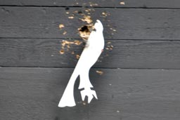 Nach nur 18 Schuss konnte Yvonne Kreutz den Kopf des diesjährigen Bürgerkönigvogels erlegen und bekam dafür eine Riesen- fleischwurst incl. Zubehör. Der Vogel war störrisch aber alle Aspiranten ließen nicht locker. Den rechten sowie linken Flügel schmetterte Rene Gerhards ebenfalls dem hölzernen Federvieh mit dem 11. und 18. Schuss von den Rippen. Nachdem der 26. Schuss den Rumpf des Vogels getroffen hatte, neigte er sich schon zu Boden.