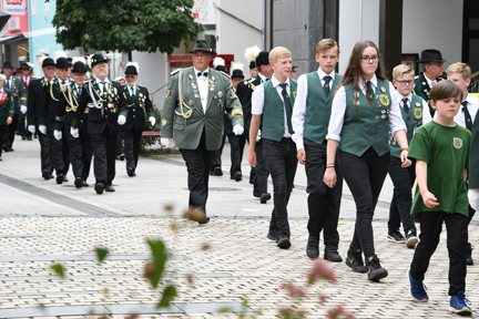 | Mit einem Marsch durch die Gemünder Innenstadt ging es zum Schützenplatz, wo die neuen Majestäten und Pokalsieger für dieses Jahr ermittelt werden sollten. Da ahnte noch keiner, dass dies in diesem Jahr eine sehr lange Angelegenheit werden würde. |